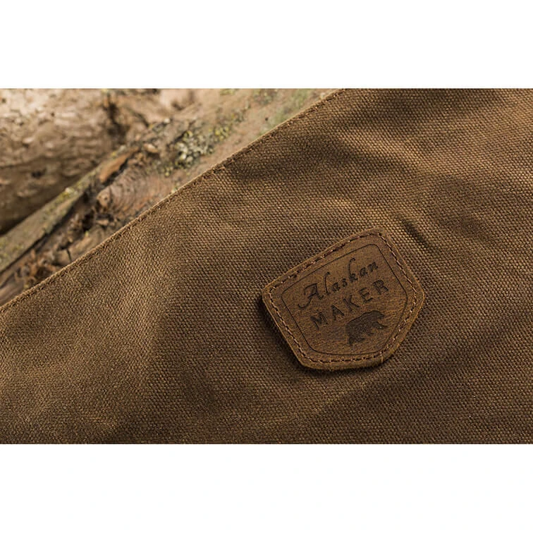 De bruine Alaskan Maker Firewood haardhouttas is vervaardigd van extra stevig, vlekwerend canvas. Hierdoor is de tas geschikt voor tal van doeleinden: voor de opslag van haardhout, het vervoeren van extra blokken of ter decoratie naast de haard. De tas is zodanig stevig, dat wanneer deze niet gevuld is alsnog goed blijft staan. De tas is vervaardigd van gewaxt canvas en afgewerkt met lederen hengels en stevige klinknagels voor extra ondersteuning. De speciale coating beschermt tegen vlekken en maakt de tas tevens gemakkelijker te reinigen.