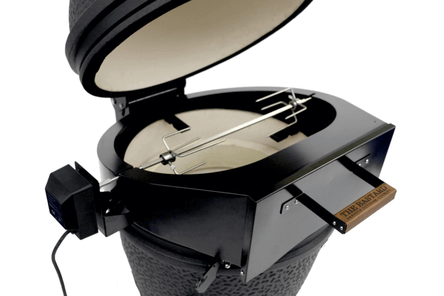 Met de The Bastard pizza-rotisserie kunt u zowel grote stukken vlees draaiend en gelijkmatig garen als knapperige pizza’s bakken. De accessoire is gemaakt van dubbelwandig materiaal wat zorgt voor een goede warmte-isolatie.